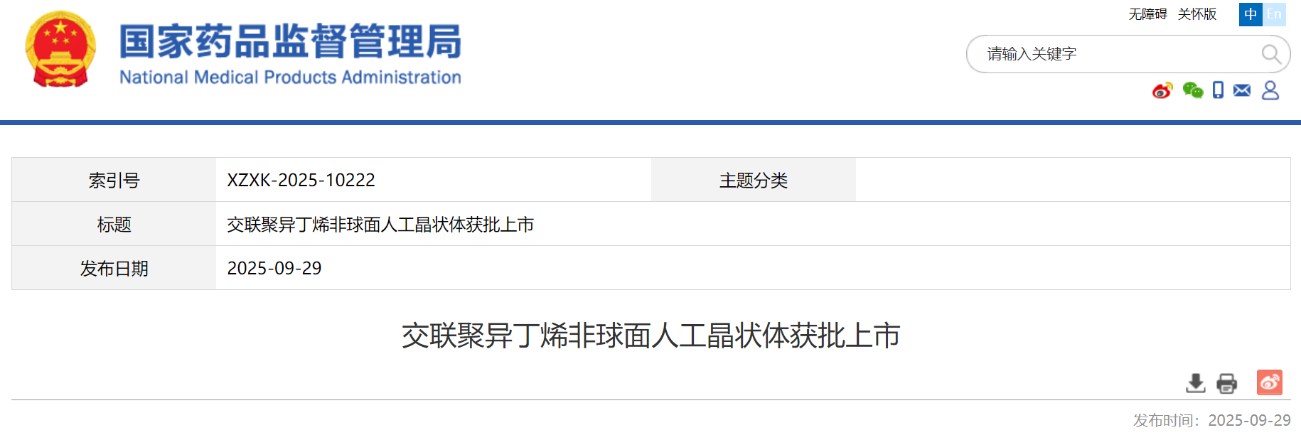 文中特别提及2025年9月,西安眼得乐医疗科技有限公司的交联聚异丁烯非球面人工晶状体获批,产品从材料源头创新,具备光学、理化、生物学等多项优异性能,有力推动了眼科植入性医疗器械技术与质量同步跃升,成为我国创新医疗器械领域掌握核心技术、引领行业发展的优秀范例。