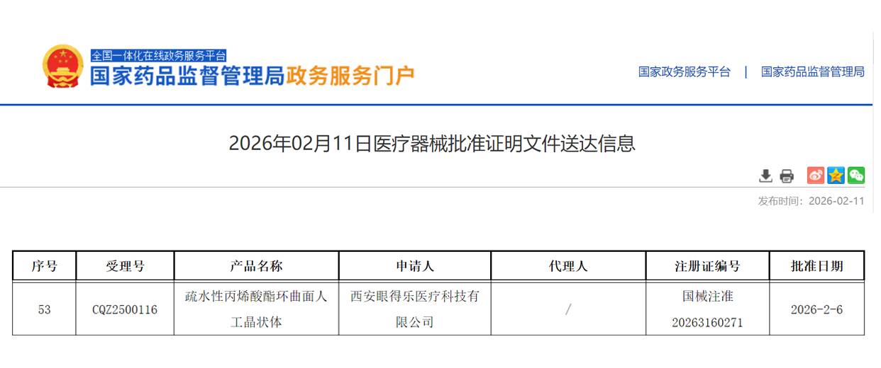 喜报| 西安眼得乐散光矫正人工晶状体(Toric IOL)正式获批