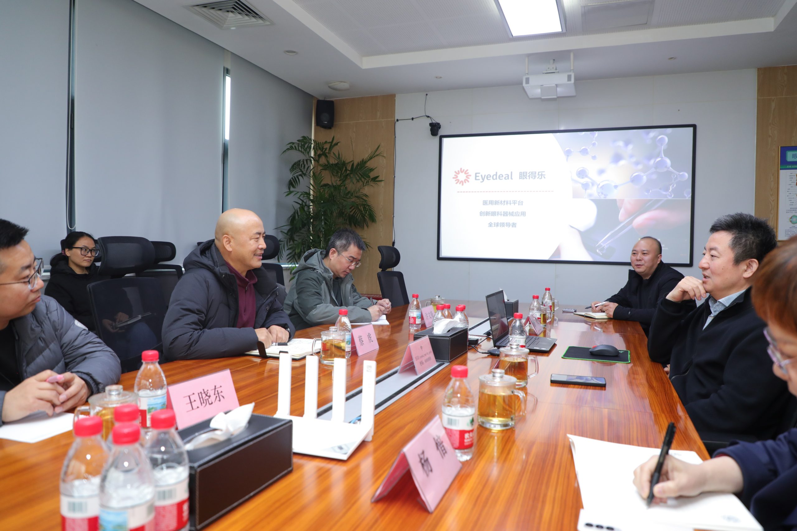 3月5日,陕西省医疗器械质量检验院院长蔡虎一行到访西安眼得乐医疗科技有限公司调研座谈,公司董事长、CEO 郭光旭及专家团队参加座谈。